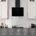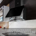 Фронтальна панель витяжки виготовлена з міцного загартованого скла чорного кольору, яке має відмінні термічні властивості. Скло має прозоре доповнення по всьому периметру. Задня частина витяжки та корпус виготовлені з фарбованого металу, що має високу стійкість до корозії, механічних та температурних впливів. Стильний зовнішній вигляд та строгий дизайн стануть відмінним доповненням будь-якого сучасного кухонного інтер'єру.