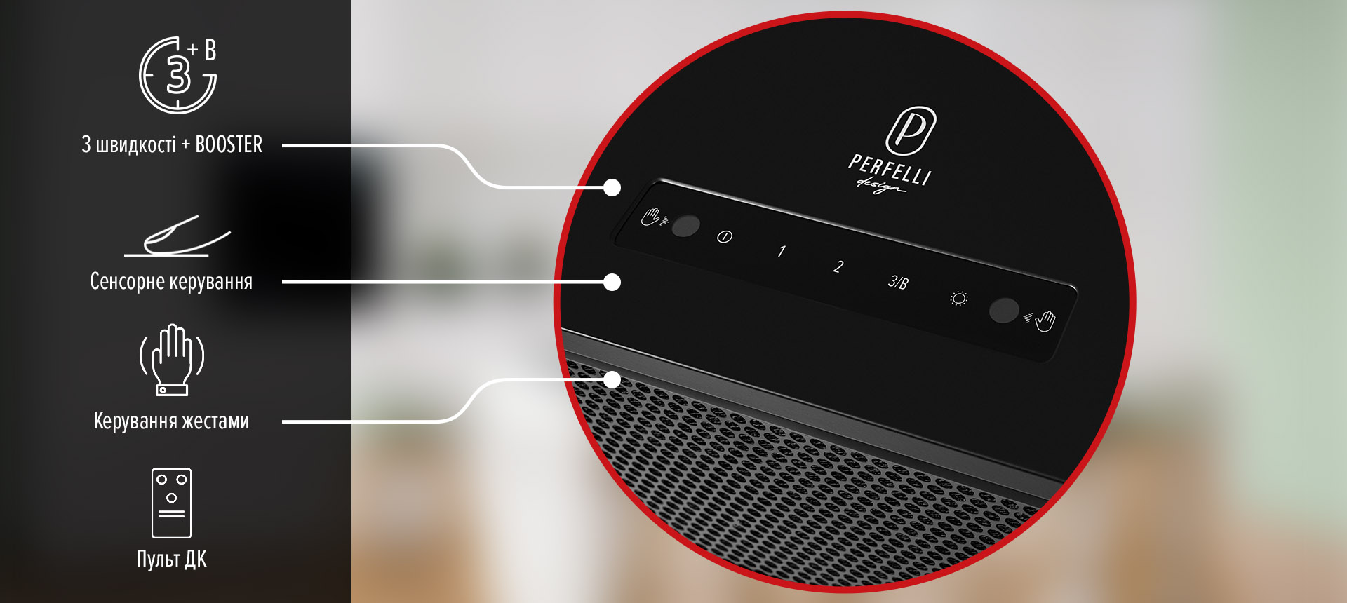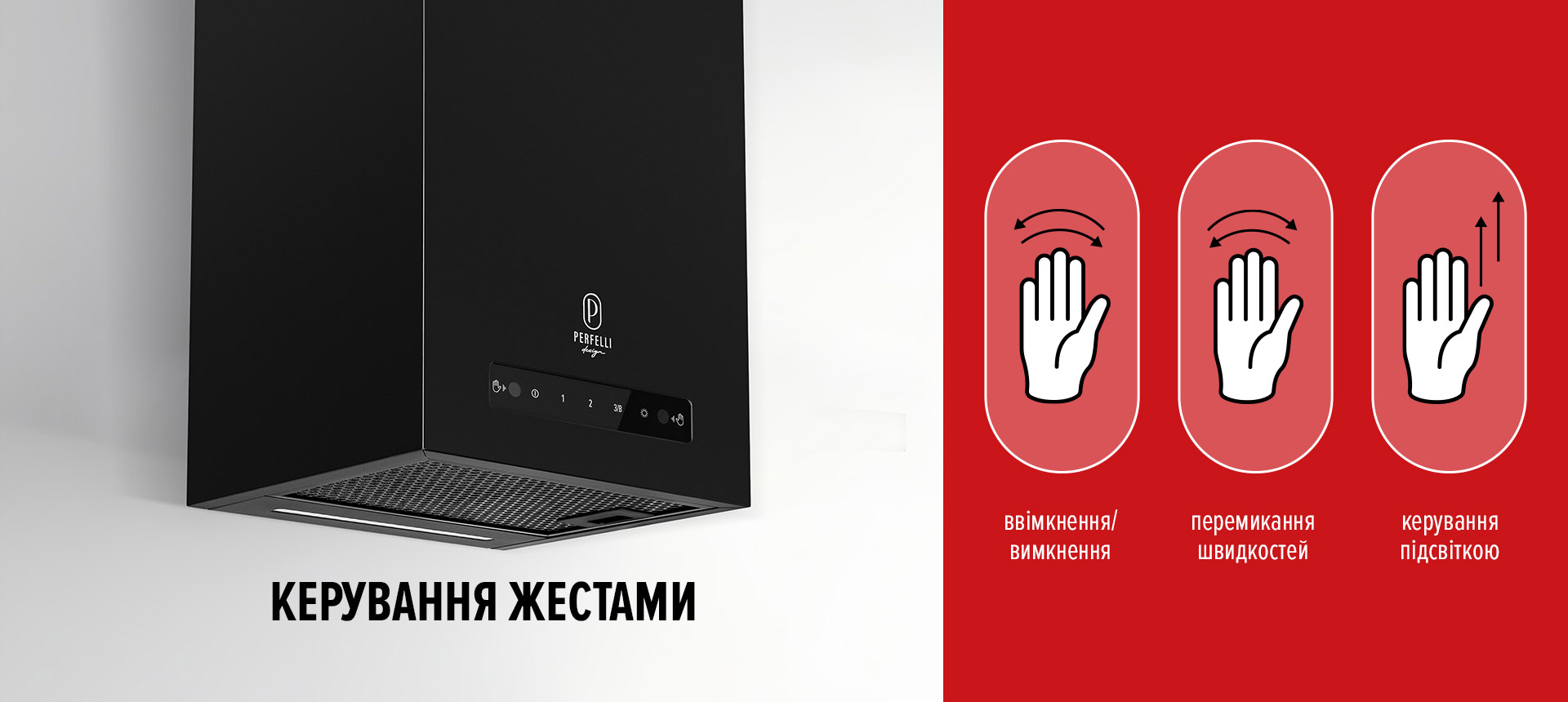 Витяжка пристінна PERFELLI DESIGN QUADRO 36 NERO SILENZIO – потужність, якою ви керуєте помахом руки