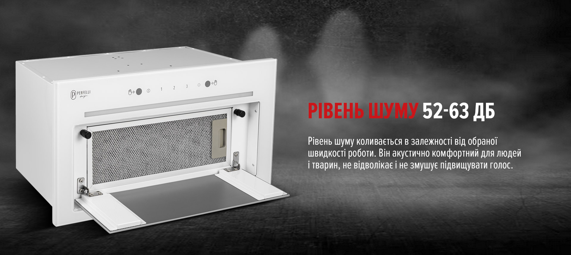 Це рівень шуму, який можна порівняти із розмовою — комфортно навіть на відкритій кухні. Не заважатиме відпочинку, спілкуванню чи перегляду серіалів під час готування.