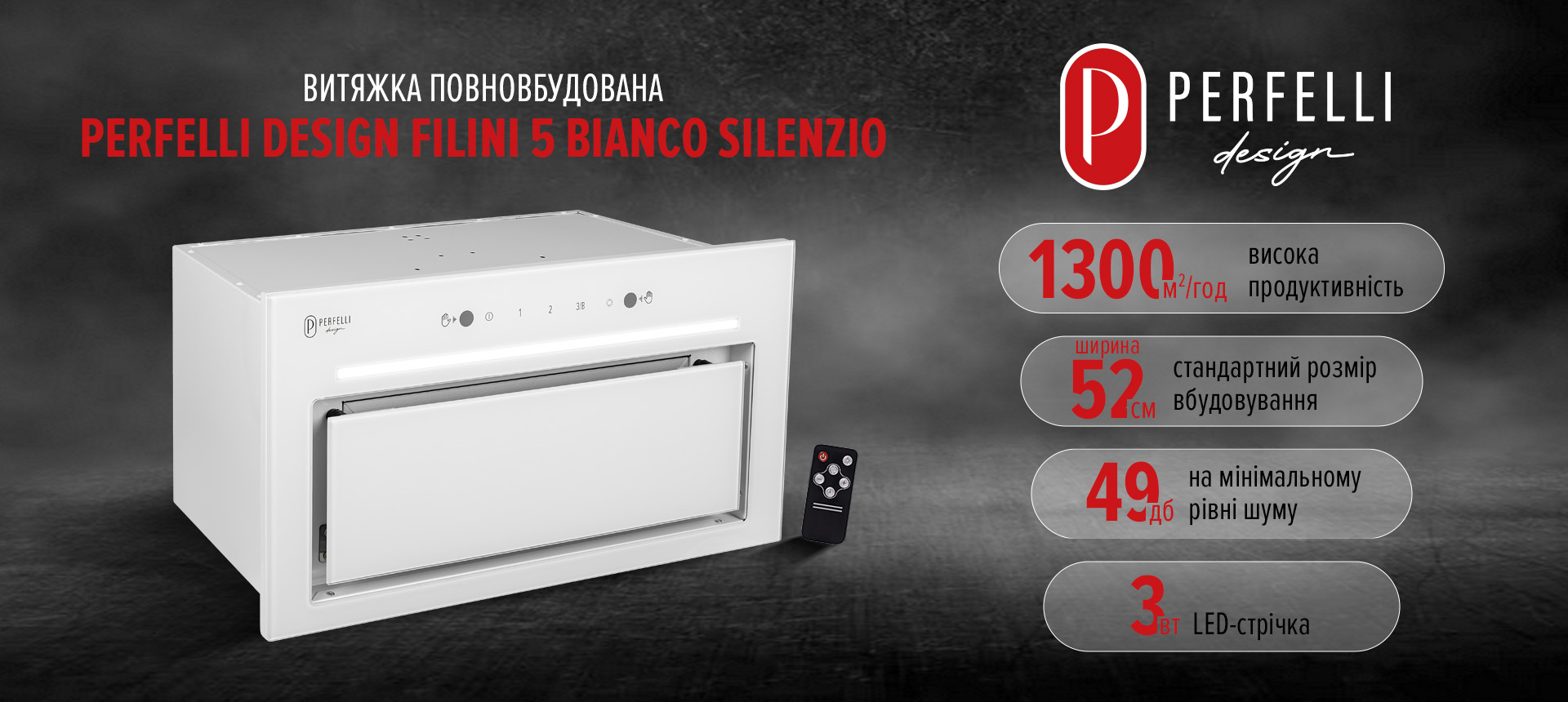 Опис Витяжка повновбудована PERFELLI DESIGN FILINI 5 BIANCO SILENZIO