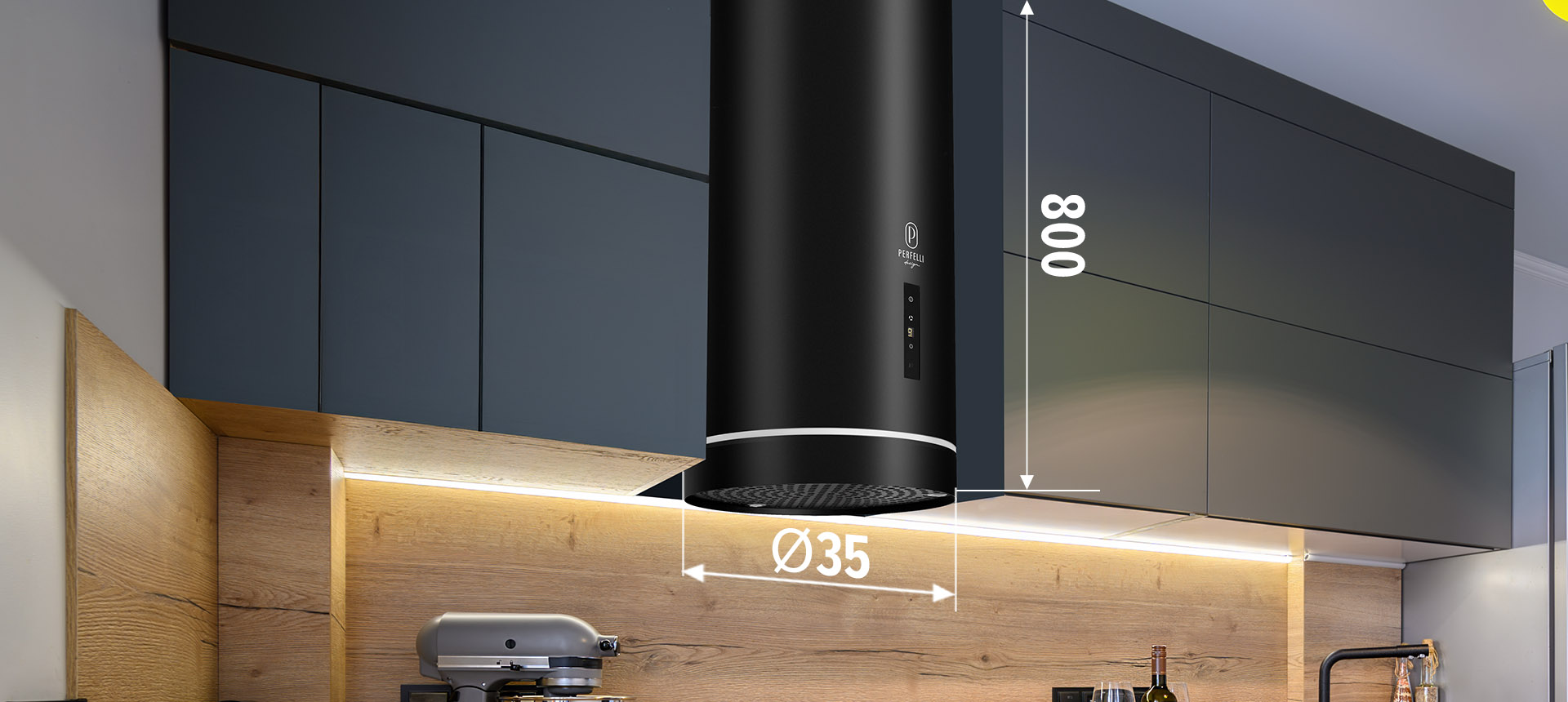 Витяжка пристінна PERFELLI DESIGN RICCO 35 NERO SILENZIO - чорна магія тиші