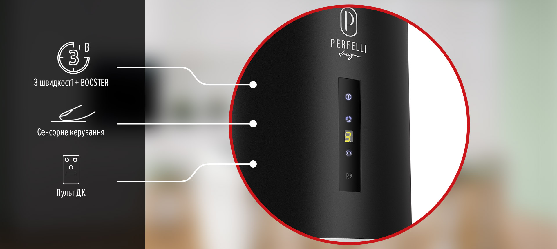Основні характеристики Витяжка пристінна PERFELLI DESIGN RICCO 35 NERO SILENZIO