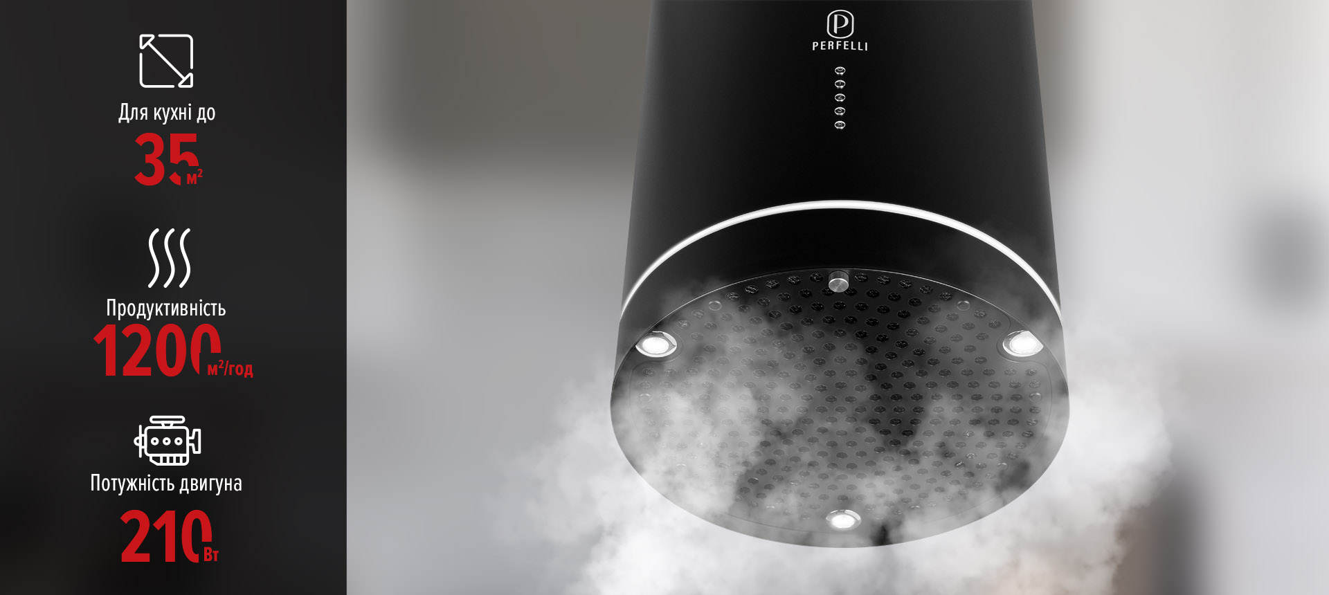 • Потужність 1200 м³/год робить витяжку ідеальною і для відкритих, і для компактних кухонних просторів.