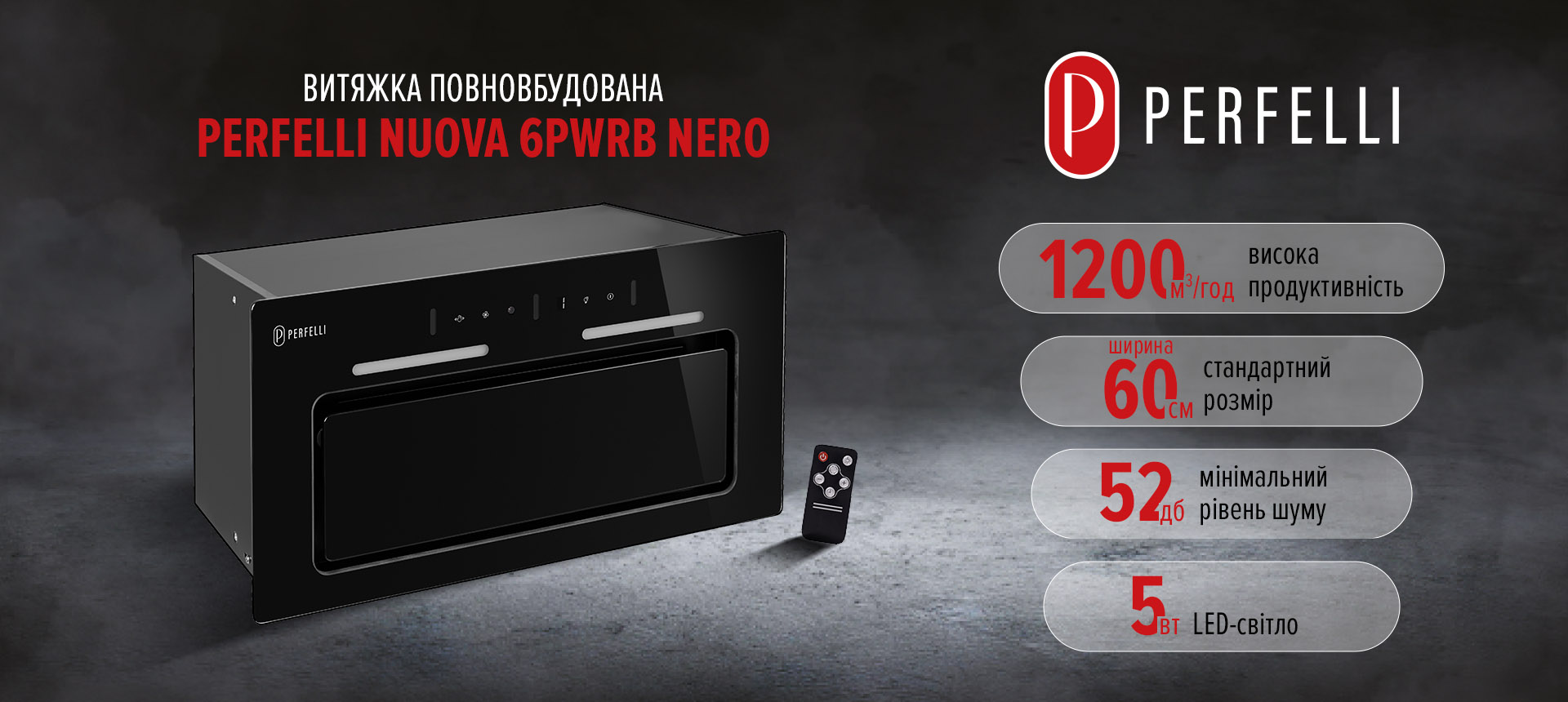 Вбудована витяжка PERFELLI NUOVA 6PWRB NERO елегантність, ефективність та передові технології для вашої кухні!