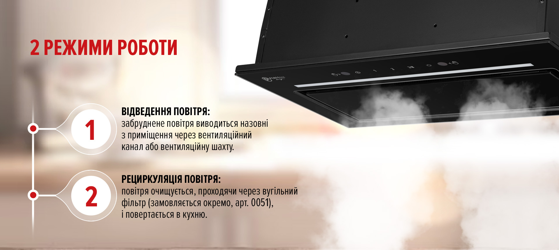 • Режимы работы: Отвод воздуха / Рециркуляция