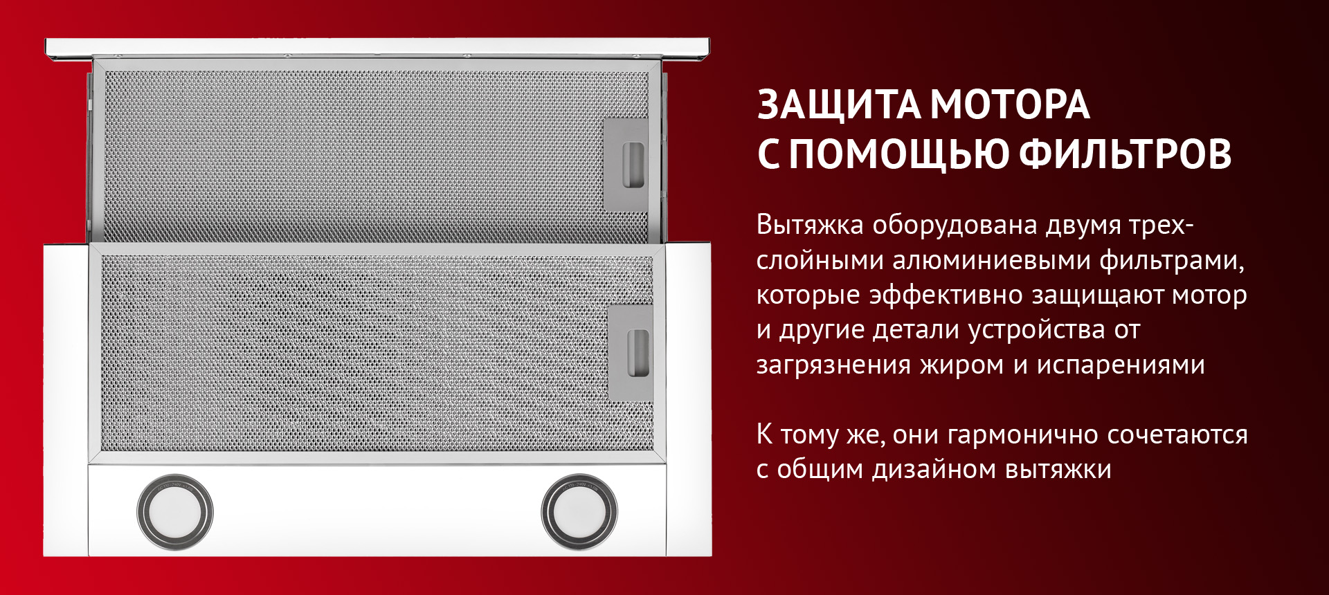 • пятислойный алюминиевый фильтр задерживает копоть и испарения