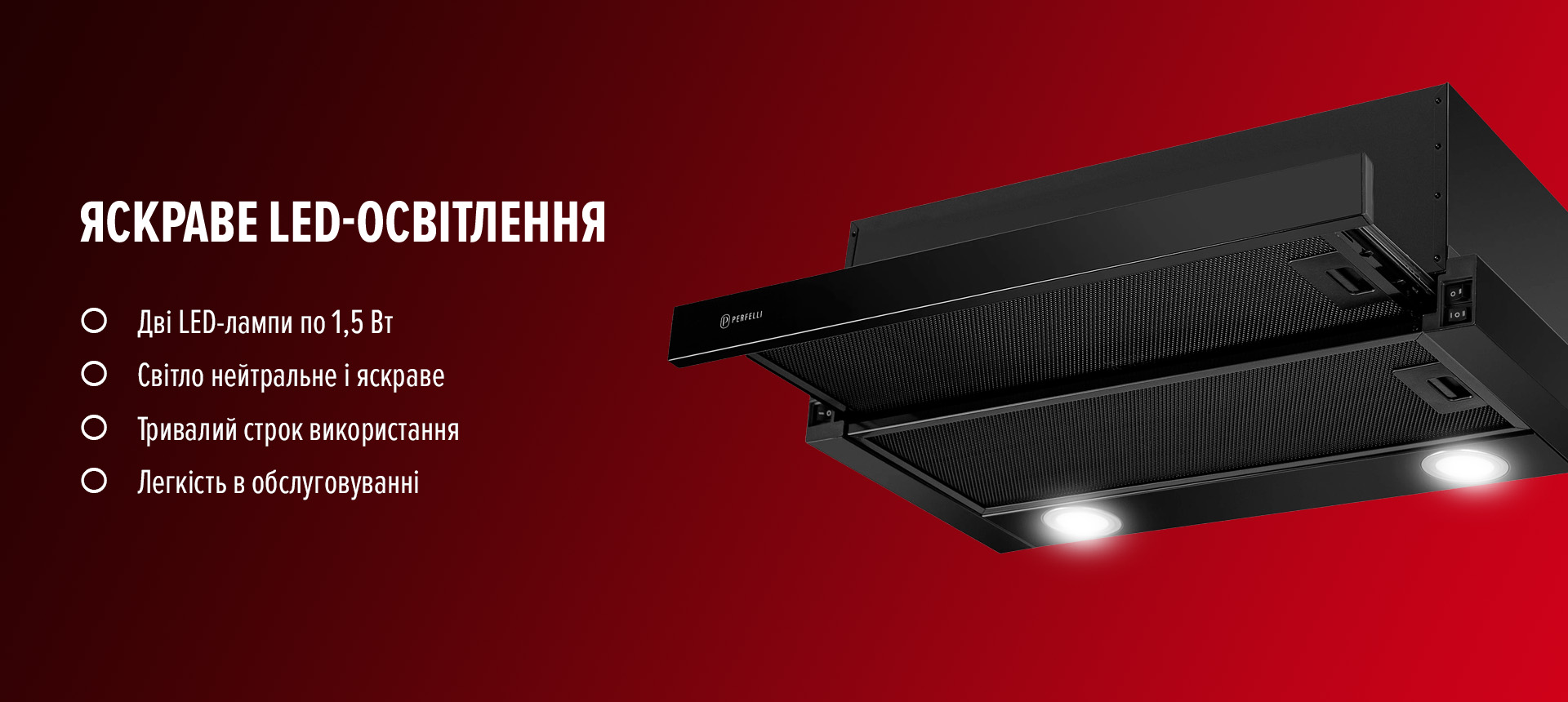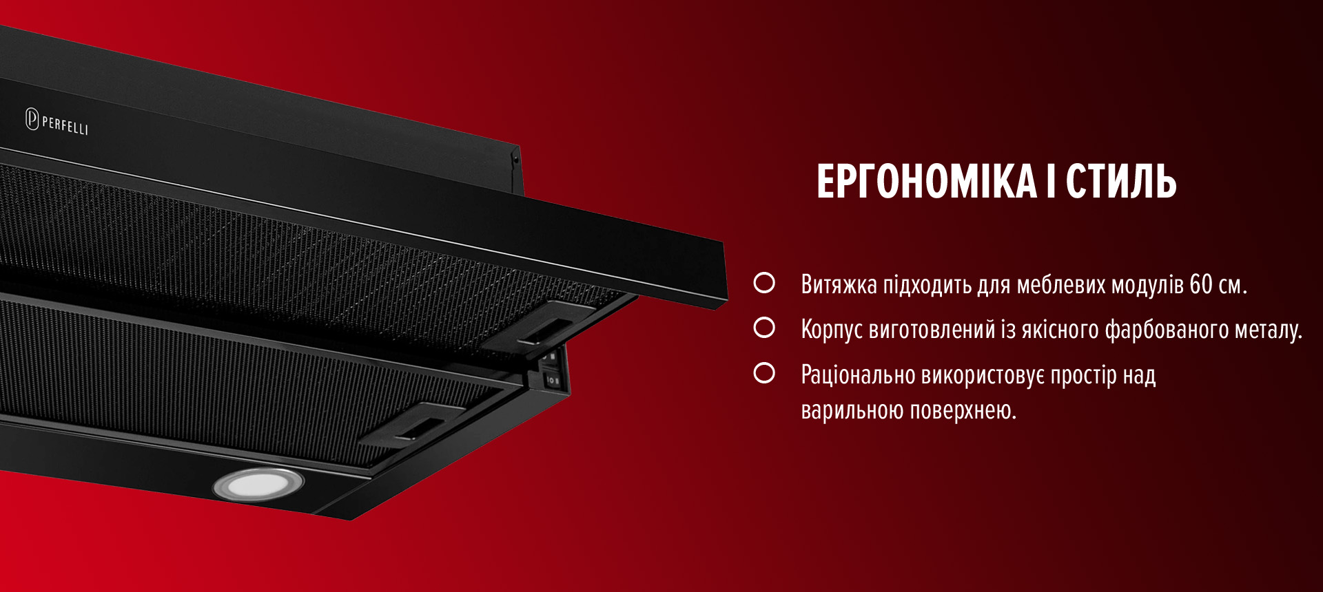 *Робота пристрою в режимі рециркуляції здійснюється лише за рахунок використання вугільного фільтра, який можна придбати окремо. Виробник perfelli.ua для витяжок власного виробництва також випускає вугільні фільтри.
