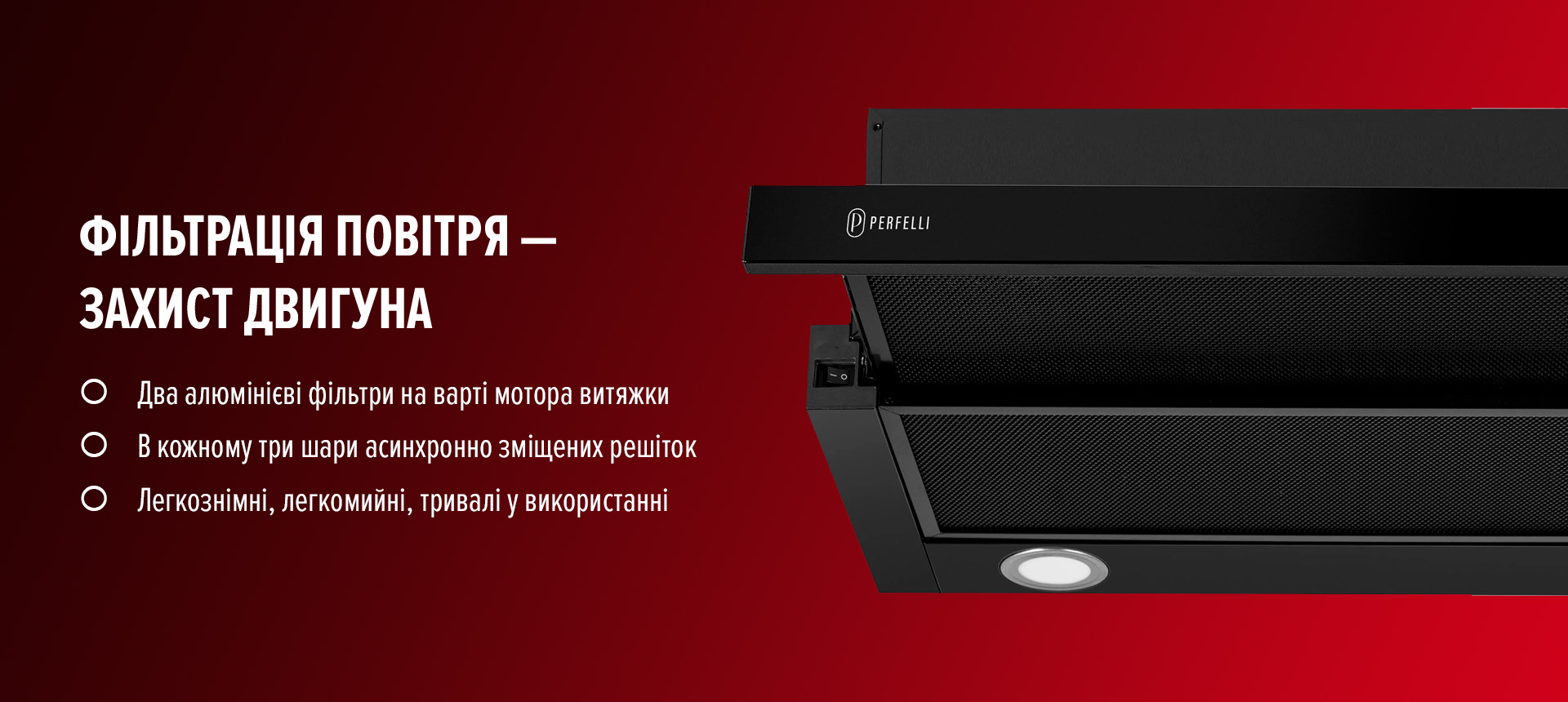 • тришаровий алюмінієвий фільтр чорного кольору затримує кіптяву та випари