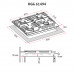Варильна поверхня "газ на склі", колір чорне скло, ширина 61 см, 4 газові конфорки, газ - контроль, електрозапалювання в ручках управління, чавунні решітки, металеві регулятори управління, фронтальна панель управління, перехідники (жиклери) на балонний газ
