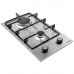 Газова варильна поверхня, колір нержавіюча сталь, матеріал - нержавіюча сталь, ширина 29 см, кількість газових конфорок - 2, газ-контроль, електрозапалювання в ручках управління, емальовані решітки, фронтальна панель управління, перехідник на балонний газ.
