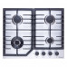 Газова варильна поверхня, колір нержавіюча сталь, матеріал - нержавіюча сталь, ширина 60см, кількість газових конфорок - 4, електрозапалювання в ручках управління, газ-контроль, WOK конфорка, чавунні решітки, фронтальна панель управління, перехідник на балонний газ.